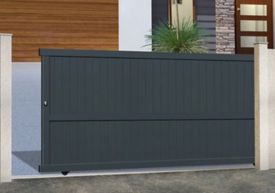 portail en aluminium coulissant newyork gris 7016 350 x h 160 cm castorama
