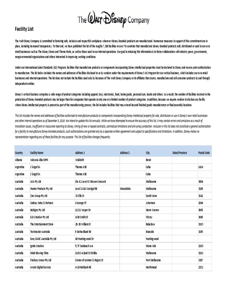 2018 facility list disclosure santiago shanghai